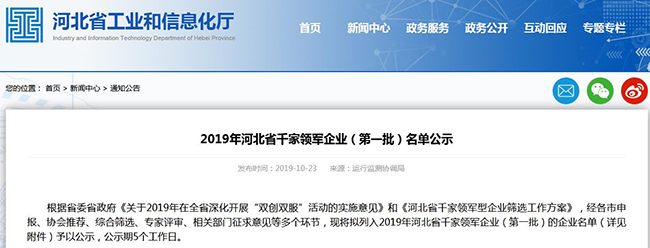 河北萬杰機械科技股份有限公司獲得河北省第一批千家領(lǐng)軍企業(yè)稱號